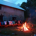 Beaucoup de travail de préparation en amont, pour que le weekend se passe le mieux possible. Pour la nourriture, c'est la base, bien manger, bien boire, cuisiner au feu de bois et faire en sorte que les repas soient des moments de découverte pour les papilles : apéros et digestifs maison, ails des ours, tourtes, poulets fermiers à la broche, salade de fruits de notre verger.... Étienne.
