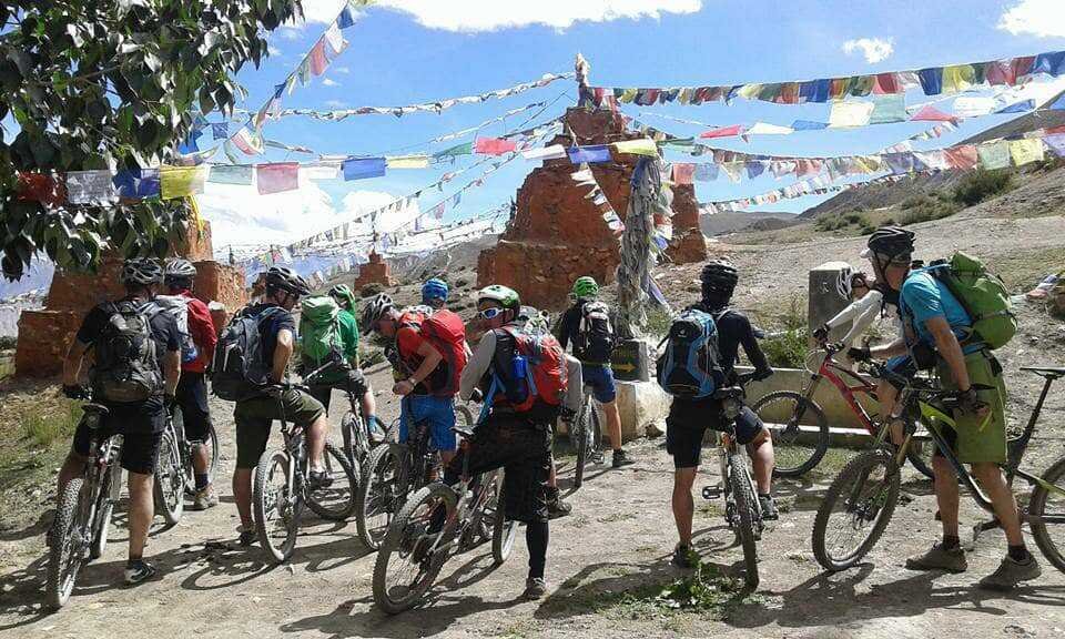 The Upper Mustang mountain biking tour covers a diverse range of areas from the arid region of Mustang to the lowlands of Tatopani. The trail follows the ancient salt trading route where one can have the opportunity to explore and experience the unique culture and tradition of the local people which have been preserved for a long time. The people living around Jomsom and Marpha are the Thakali people while the people living in the upper regions have a culture that heavily resembles the Tibetan culture. Both of these communities practice Tibetan Buddhism. Another unique feature of this tour is Lubra village. It is the only village in the Mustang region where you can observe the people practicing the pre-Buddhist religion called, "Bon".