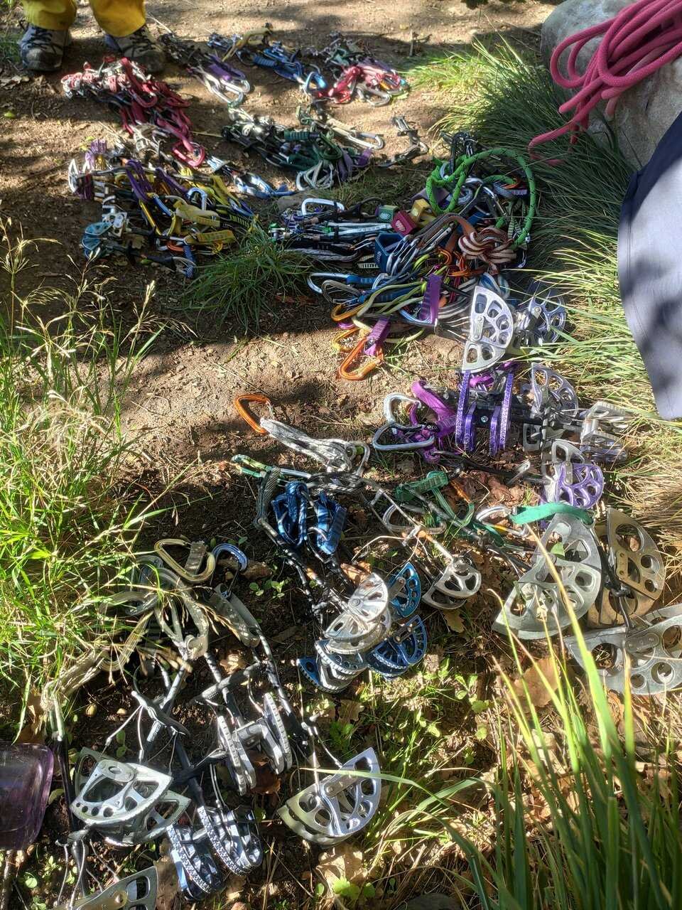 - Présentation de l'« arsenal » du grimpeur traditionnel (le rack de coinceurs).