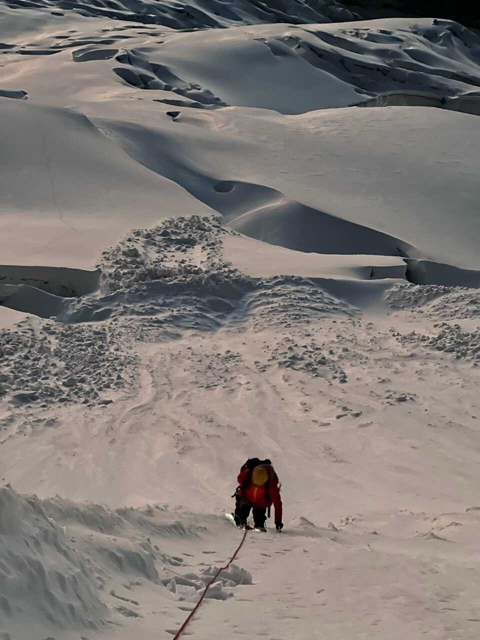 Une alternative plus technique vers un sommet bien connu. C'est une superbe expérience d'andinisme, débutant par un vaste glacier pour gravir ensuite une face raide de neige et glace et terminer par une fine arête neigeuse de toute beauté. A recommander aux grimpeurs les plus exigeants
